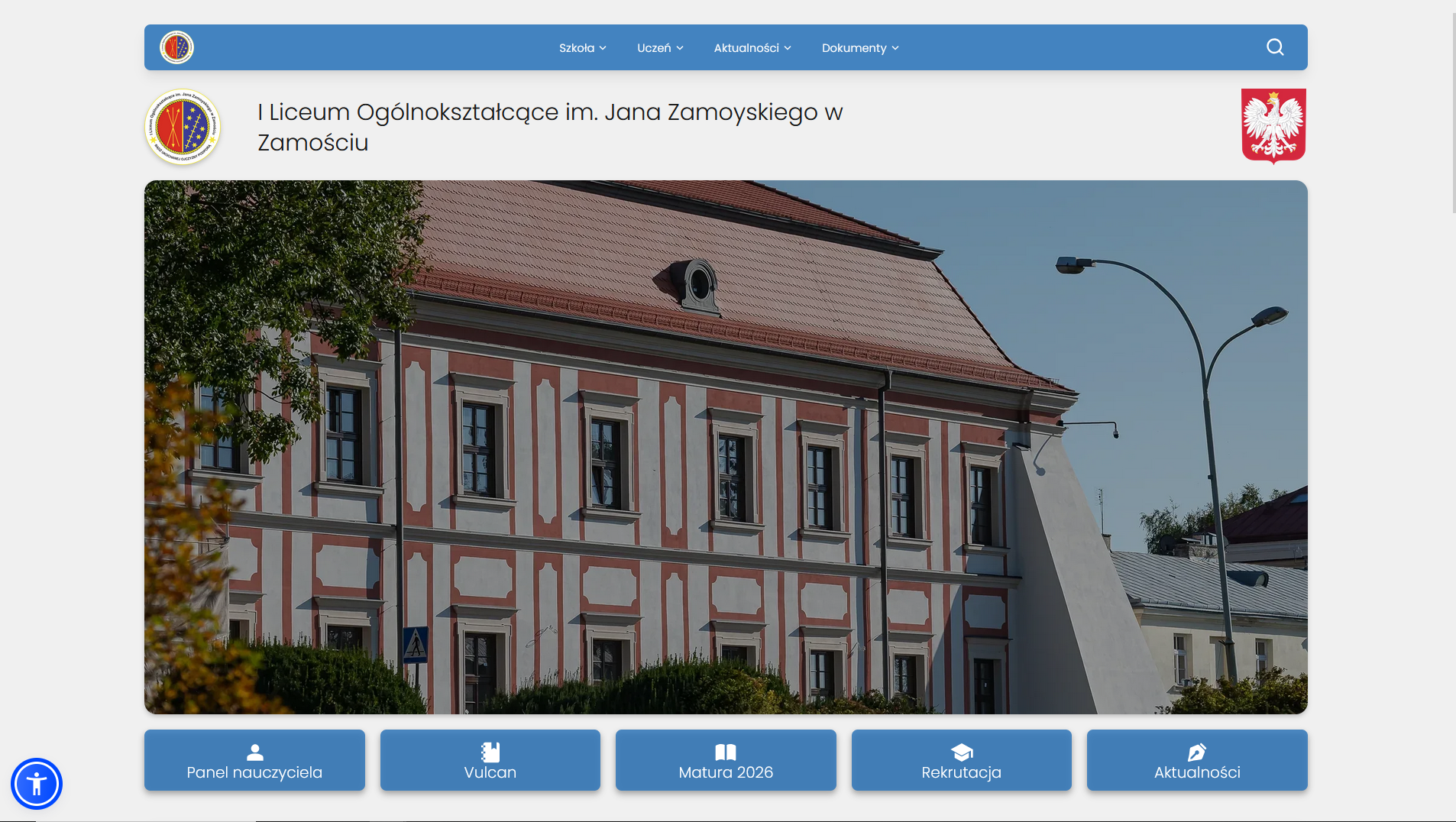 A modern digital website for the Jan Zamoyski High School in Zamość. It integrates a sleek student portal with a streamlined content management system, enabling staff to effortlessly publish news, manage photo galleries, and update schedules.